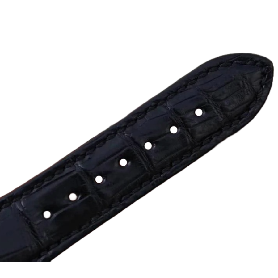 The rich blue dial features clean stick indices and polished hands. all crafted from 904L stainless steel. adding a luxurious yet understated shine. Paired with a black leather strap and fold clasp. the fit is as comfortable as it is stylish. with adjustable links mirroring the authentic piece.