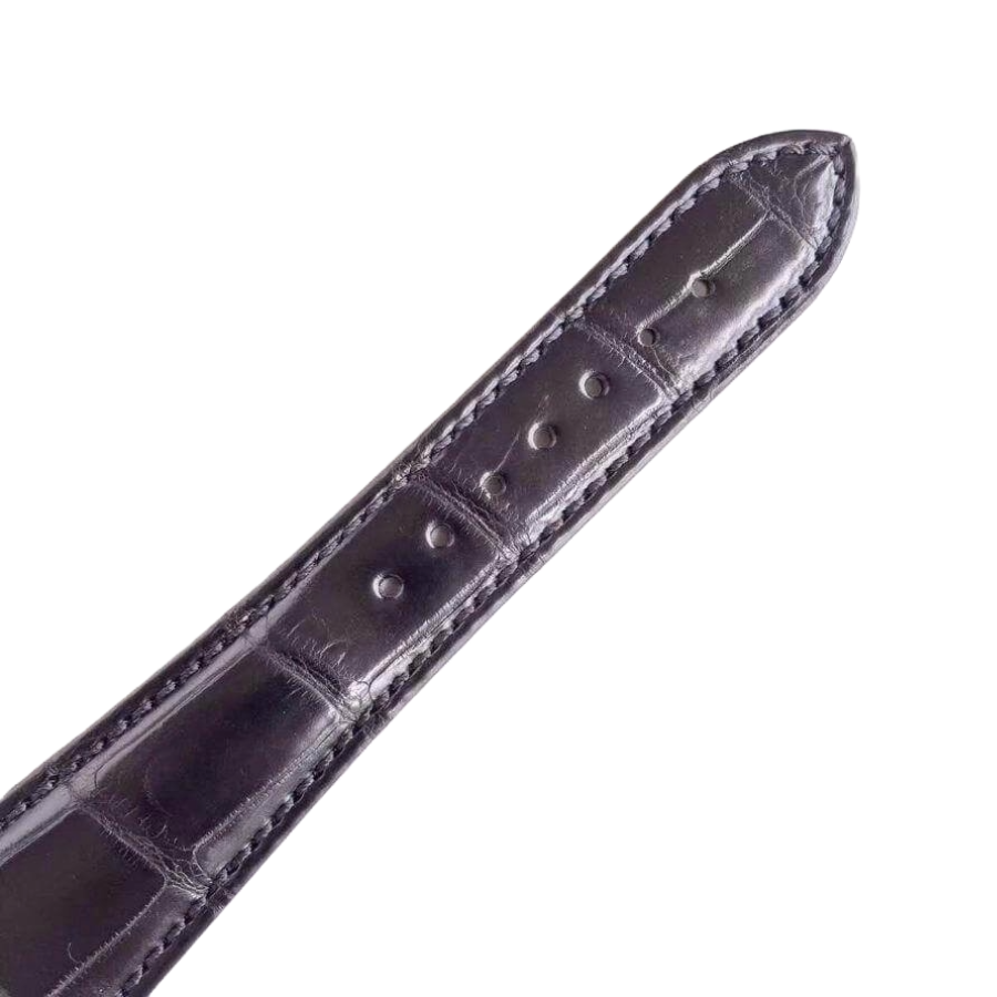 The yellow gold dial features clean stick indices and polished 904L stainless steel hands. maintaining a minimalist yet opulent appeal. Paired with a black leather strap and yellow gold fold clasp. the contrast emphasizes the timepiece’s rich tones and sharp lines.
