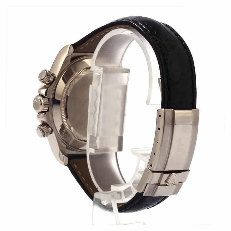 Introducing the Rolex Daytona 116519 White Roman Dial Replica — an exquisitely crafted homage to one of the most iconic timepieces ever made. This exceptional piece is a perfect 1:1 clone of the original. capturing every detail with an unwavering commitment to authenticity. From the gleaming 904L stainless steel case and bezel in an elegant white gold color to the pristine white gold dial adorned with Roman numerals. this replica exudes luxury in every aspect. Envision yourself slipping this masterpiece onto your wrist. the feel of its premium materials and flawless design adding a touch of timeless sophistication to your style.Every glance at the watch reveals the superior craftsmanship. from the sapphire crystal that resists scratches to the supple alligator leather bracelet that wraps comfortably around your wrist. featuring an adjustable link to ensure the perfect fit. The heart of this marvelous timepiece is its automatic caliber 4130 movement. boasting an impressive power reserve of 60 hours and an exceptional precision of -3/+3 sec/day within COSC certification limits. The second hand glides smoothly with a sweep motion that symbolizes the perpetual motion of time itself.Designed to withstand the rigors of everyday life. this replica is water-resistant. ensuring it remains unscathed whether you’re caught in a sudden downpour or indulging in water sports. Accompanied by a full 2-year international warranty. it offers you peace of mind that your investment is protected. The impressive attention to detail extends to the arrangeable serial numbers and cards. fonts. punto. and finishing for writings and markings. as well as the perfect thickness and size. This obsessive attention to detail ensures even your jeweler won’t discern it from the original.In a world rife with inferior . the Rolex Daytona 116519 White Roman Dial Replica stands out as a paragon of excellence. Whether you’re an aficionado of fine watches or someone who appreciates the finer things in life. this replica is undeniably the best choice for your needs. Allow its breathtaking design and impeccable precision to elevate your everyday experiences. painting a vivid picture of luxury and prestige every time you check the hour.